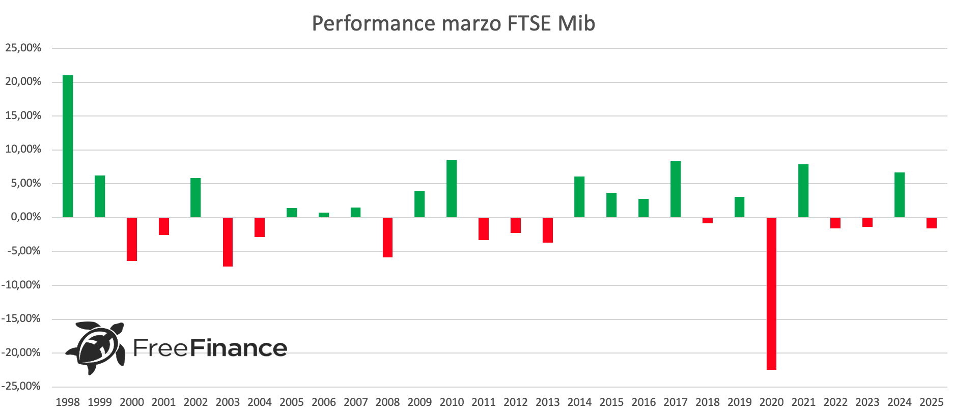 L’Europa mostra dati più contrastanti. Il FTSE Mib ha chiuso in positivo solo il 53,75% delle volte, con una variazione del +5,84%. La performance negativa media è stata del -4,76%, mentre quella generale del +0,92%.